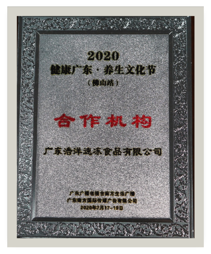 2020年,浩洋食品”指定為健康廣東。養(yǎng)生文化節(jié)“合作機(jī)構(gòu)”。